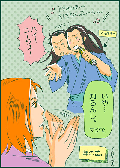 お茶のCMで、キム兄が奥方に甲冑を着せてもらおうとしてて