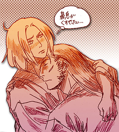 主の胸で眠る厚かましい家臣之図です。